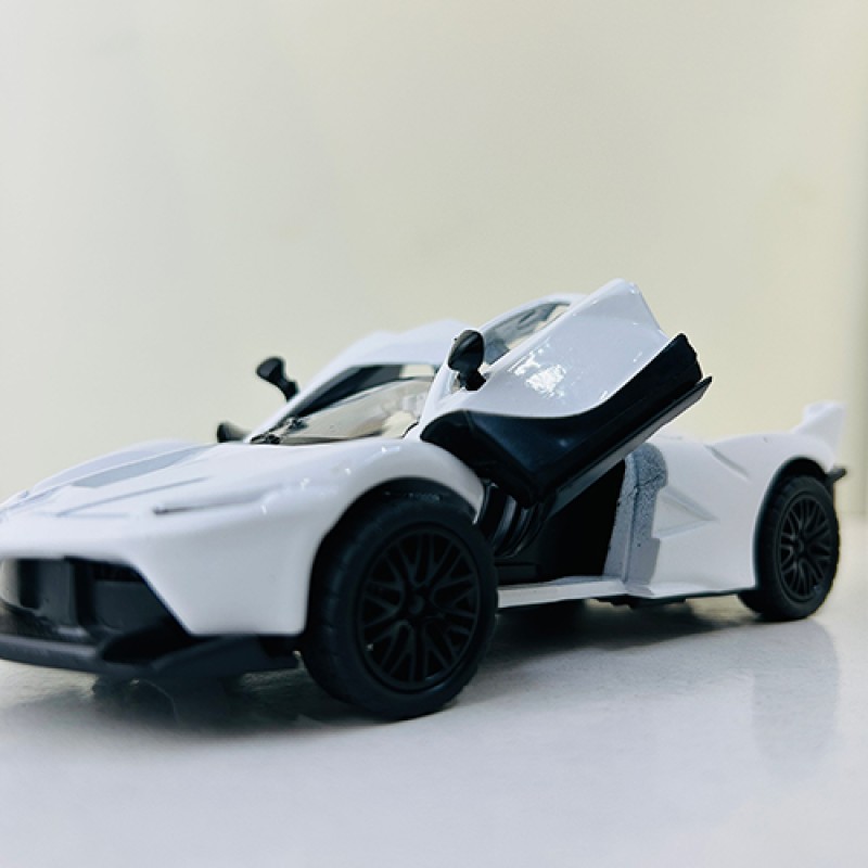 This is a white Bburago die-cast scale model of a Ferrari LaFerrari.